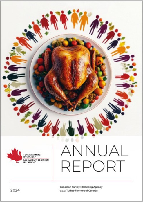 The 2024 Annual Report of the Canadian Turkey Marketing Agency (c.o.b. Turkey Farmers of Canada) is prepared for presentation to the Federal Minister of Agriculture and Agri-Food, the Farm Products Council of Canada and TFC Members.