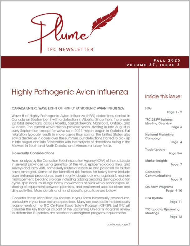 Keep up to date on what's happening with TFC and the Canadian Turkey industry with the TFC Plume Newsletter.